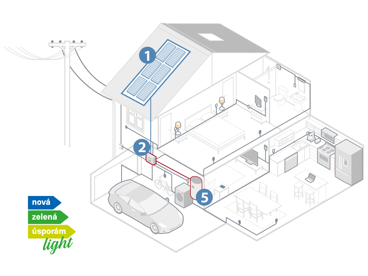 Umožňuje využívat vyrobenou elektrickou energii v objektu pro napájení spotřebičů, světel či nabíječky elektromobilu a případné přebytky výroby použít pro ohřev vody.